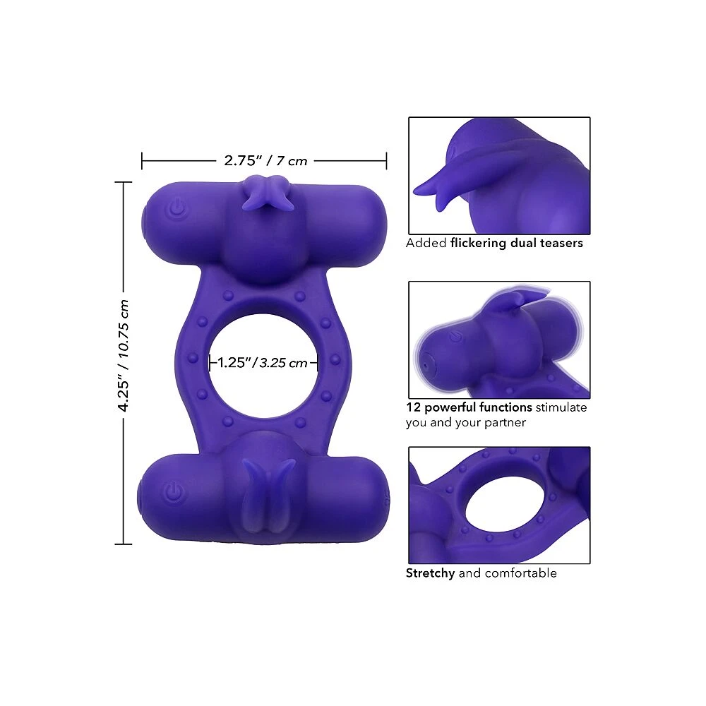 Tandis que l’anneau extensible est bien en place autour du pénis, les deux stimulateurs vont offrir des vibrations intenses à différentes zones sensibles !