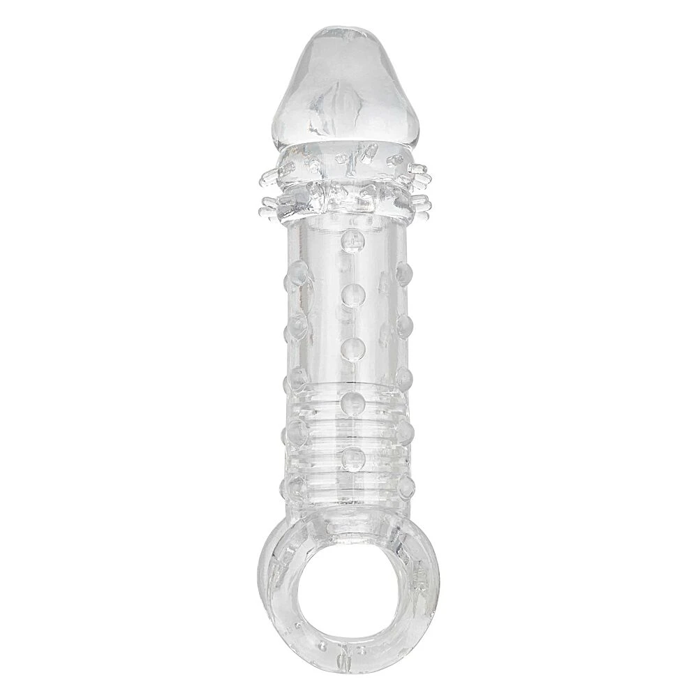 Pendant que l’effet de succion et les nervures internes stimulent le porteur, la circonférence et la longueur supplémentaires ainsi que la texture cloutée ravissent la partenaire.