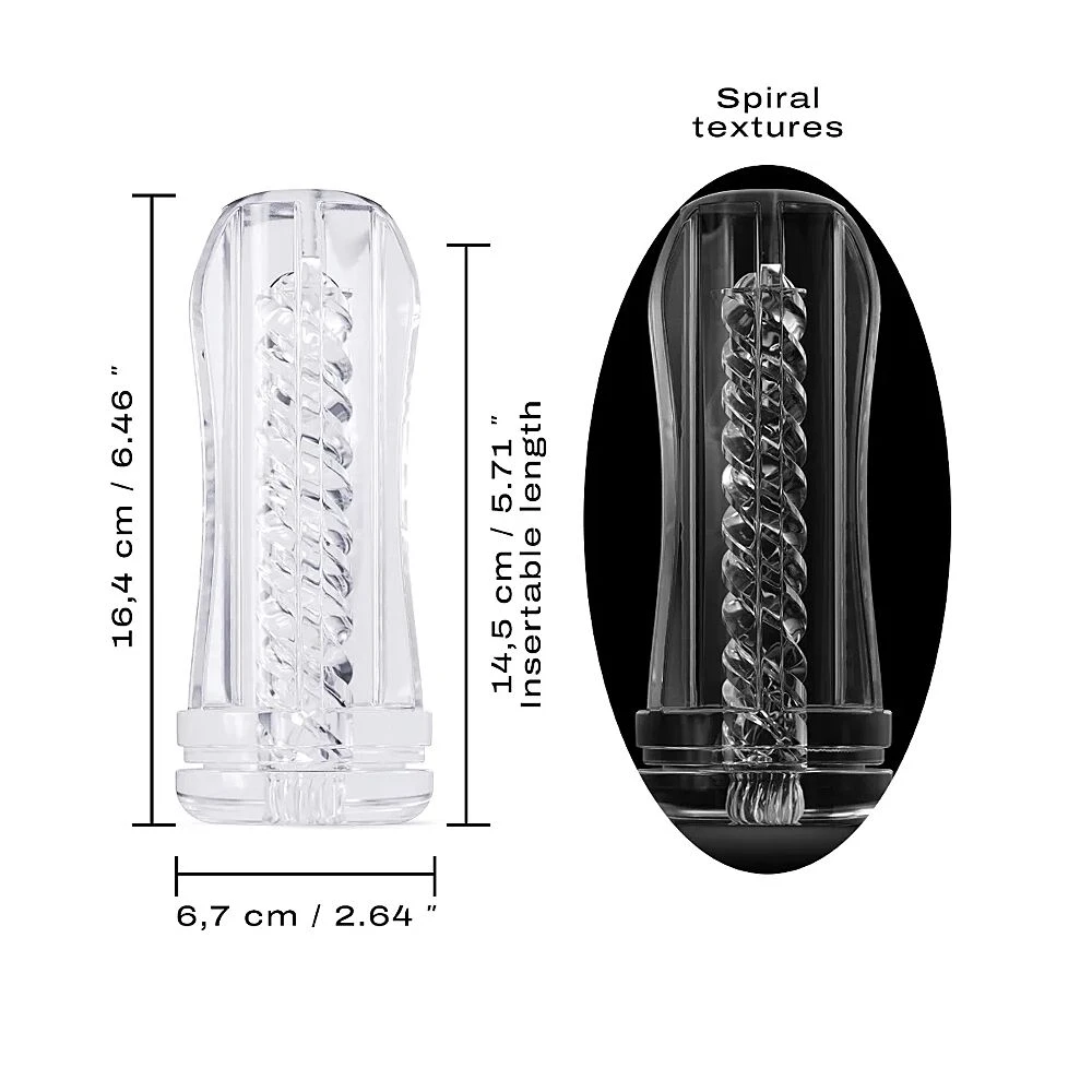 L’entrée est resserrée pour procurer encore plus de sensations. L’intérieur est texturé avec des rayures et des spirales pour découvrir une nouvelle façon de se masturber.