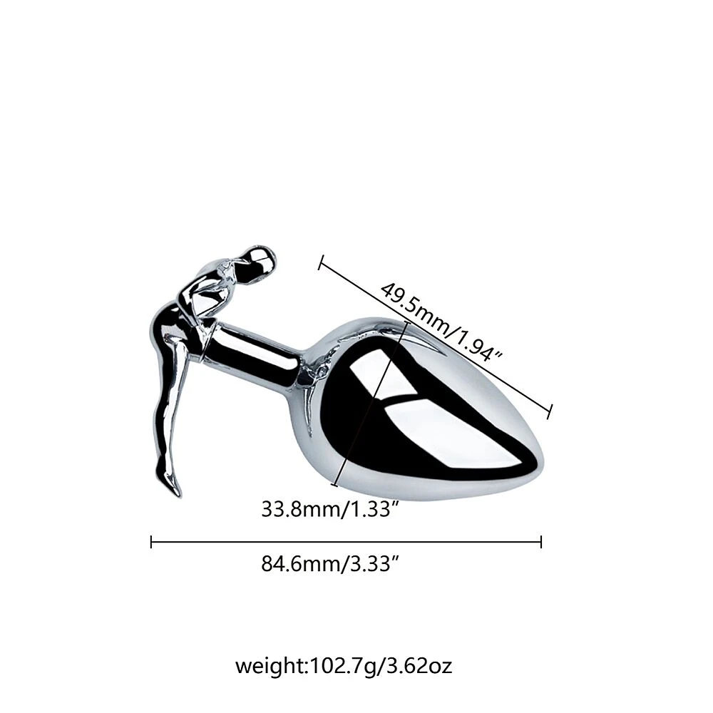 Un plug anal lisse en aluminium avec une base original en forme de corps humain.