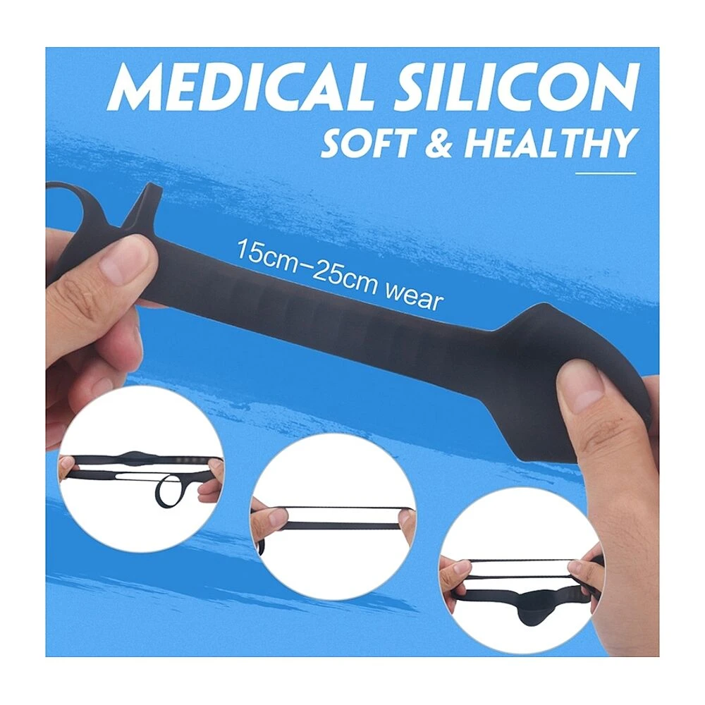 La partie en silicone sur le dessus du pénis comporte des reliefs pour augmenter les sensations du(de la) partenaire.