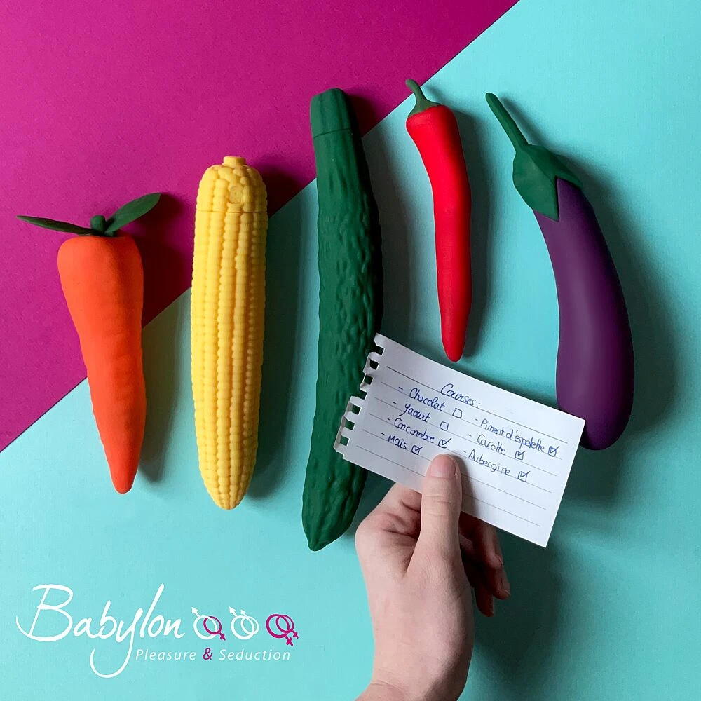 Ces légumes sont les « Vibrating Veggies » de Gemüse. Ils sont conçus dans un silicone doux au toucher avec un moteur vibrant de grande puissance et sont rechargeable avec un câble USB.