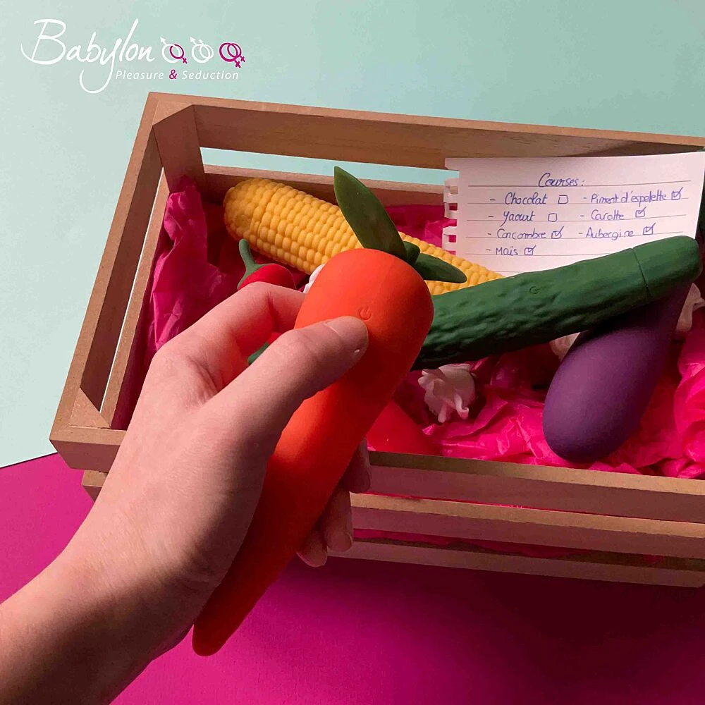 Ces légumes sont les « Vibrating Veggies » de Gemüse. Ils sont conçus dans un silicone doux au toucher avec un moteur vibrant de grande puissance et sont rechargeable avec un câble USB.