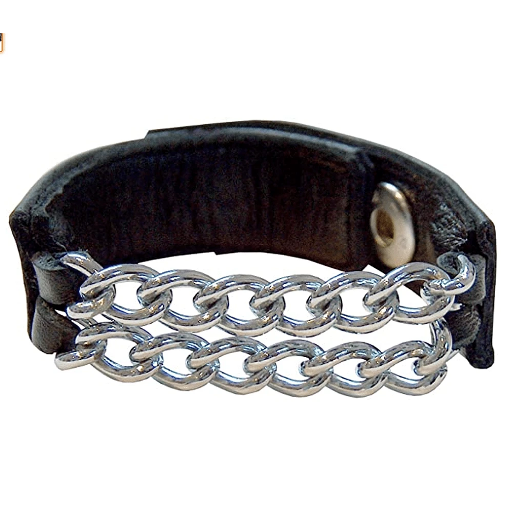 Un cockstrap spectaculaire qui combine le cuir avec deux robustes chaines en acier.