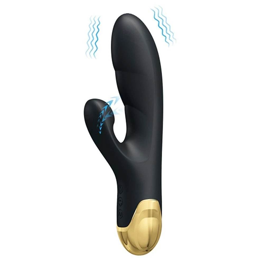Le vibromasseur Rabbit Naughty Play présente un design ultra luxeux avec son alliage de zinc plaqué or 24K.