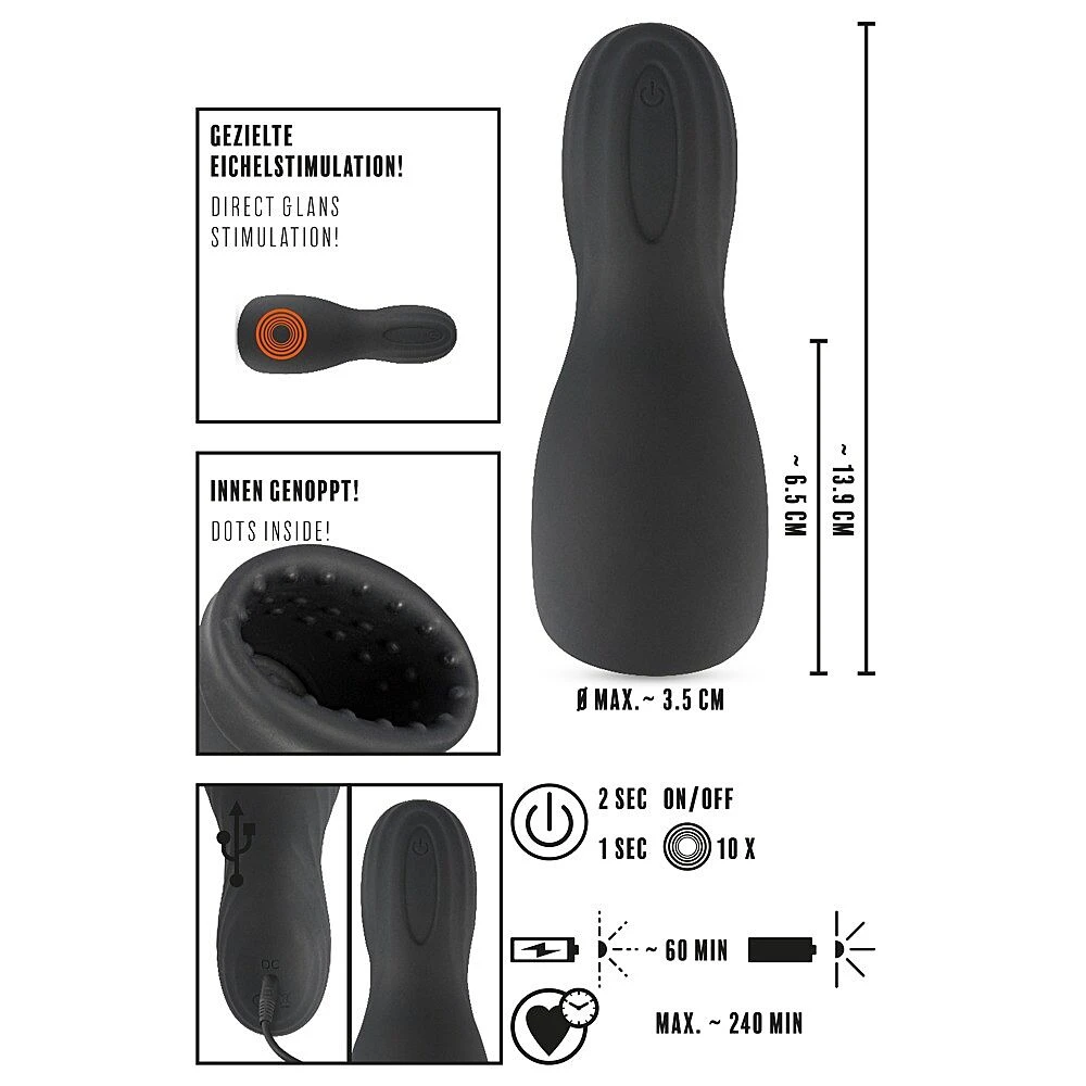Un masturbateur compact et pratique qui stimule directement le gland et le frenulum grâce à des vibrations intenses.