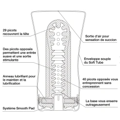 De plus, des détails de sensations intenses et un vide d’aspiration assurent le massage ultime du pénis.